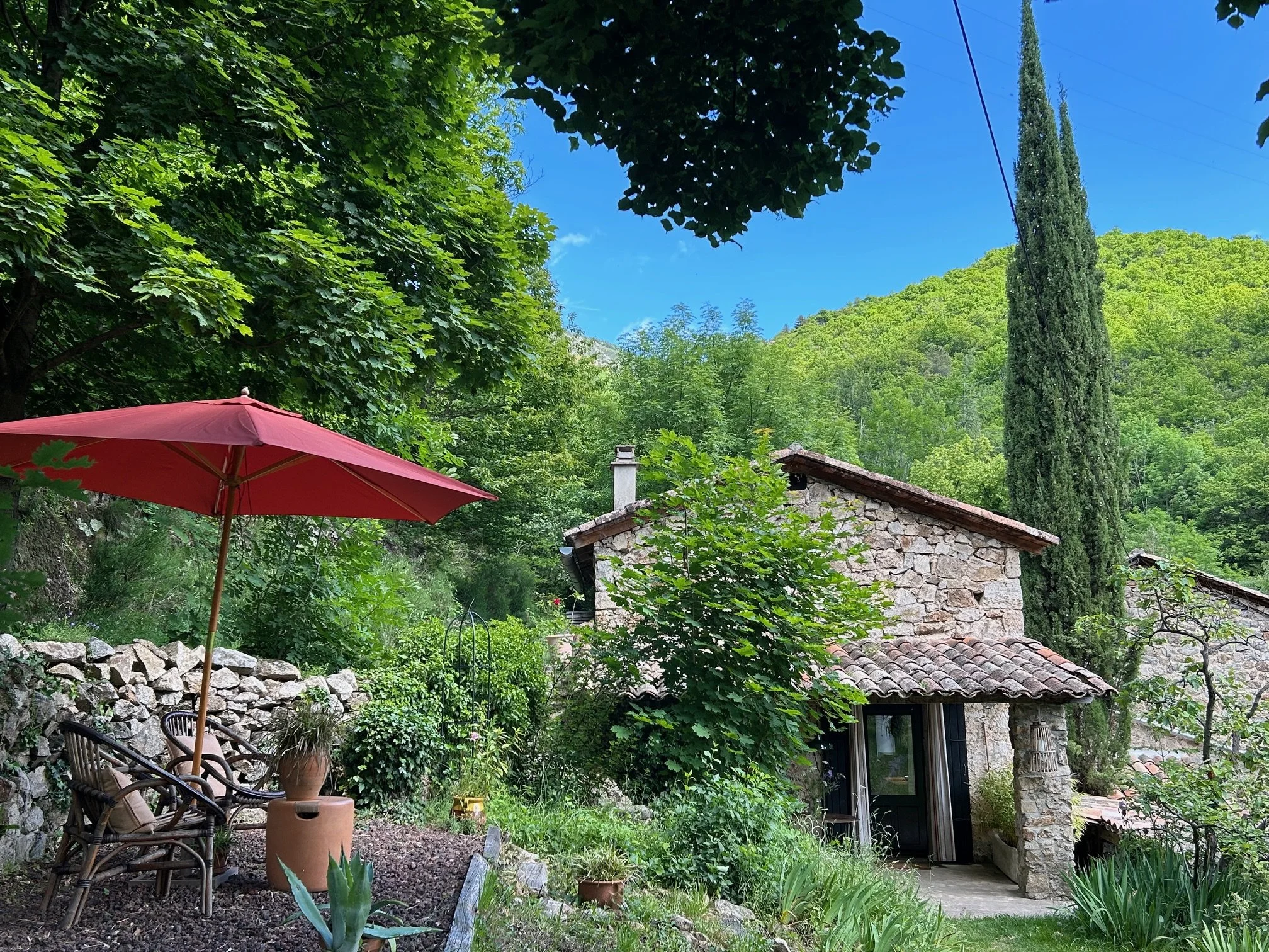 Come and join us in this green paradise. Move in nature’s rhythm. Come swim in wild rivers and escape in the magic of Ardèche. Breathe. Let your lungs fill with clean air. Listen to the trickling of the stream and rustling of leaves through the treetops. The birds sing their morning song, the butterflies flit around. Watch the stars at night. Laze in a hammock.