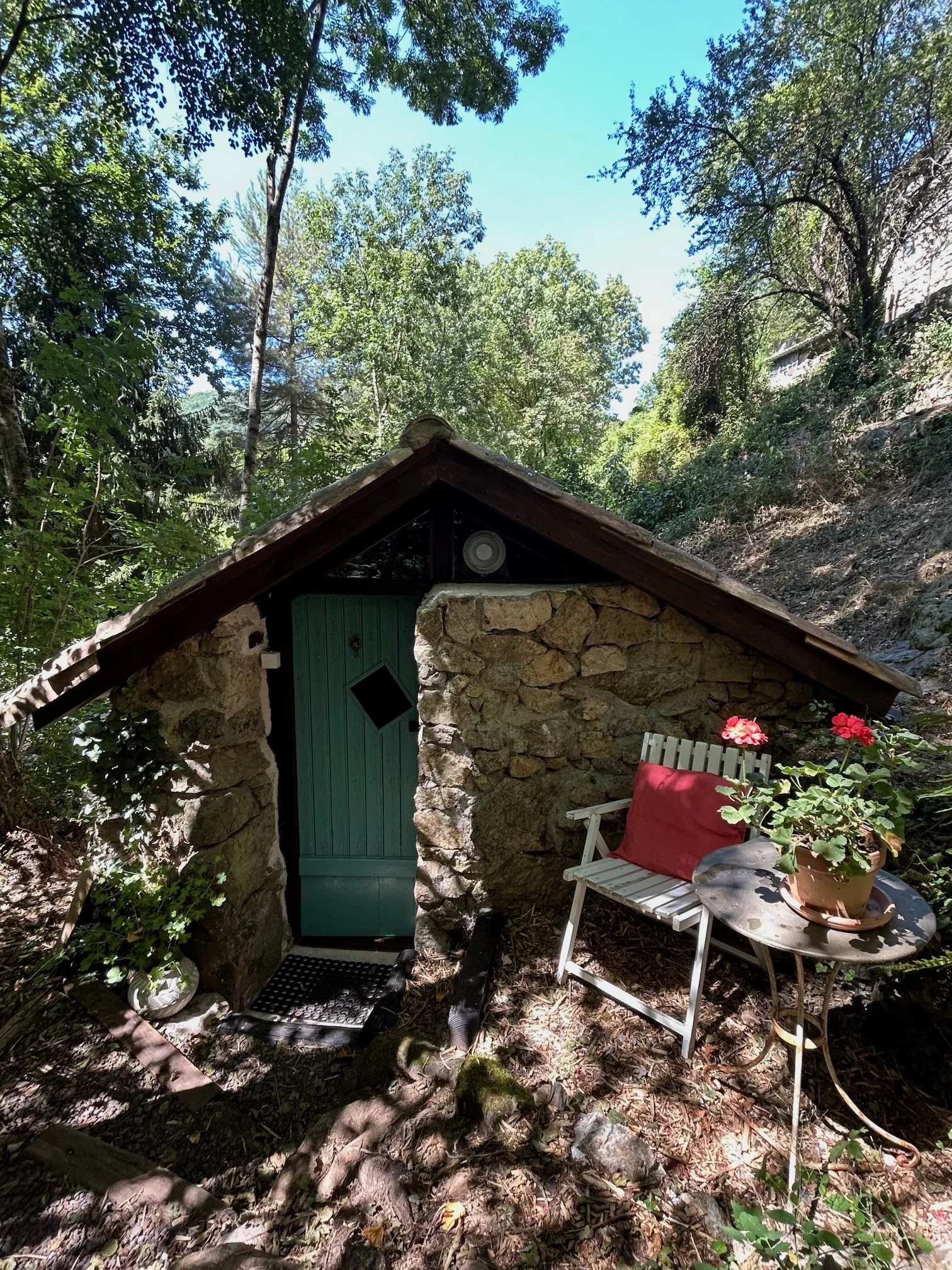 The mushroom house is a tiny old stone room. It has its own grounds and entrance. Formerly a turbine house, It is suitable for one person who prefers privacy and their own space.
