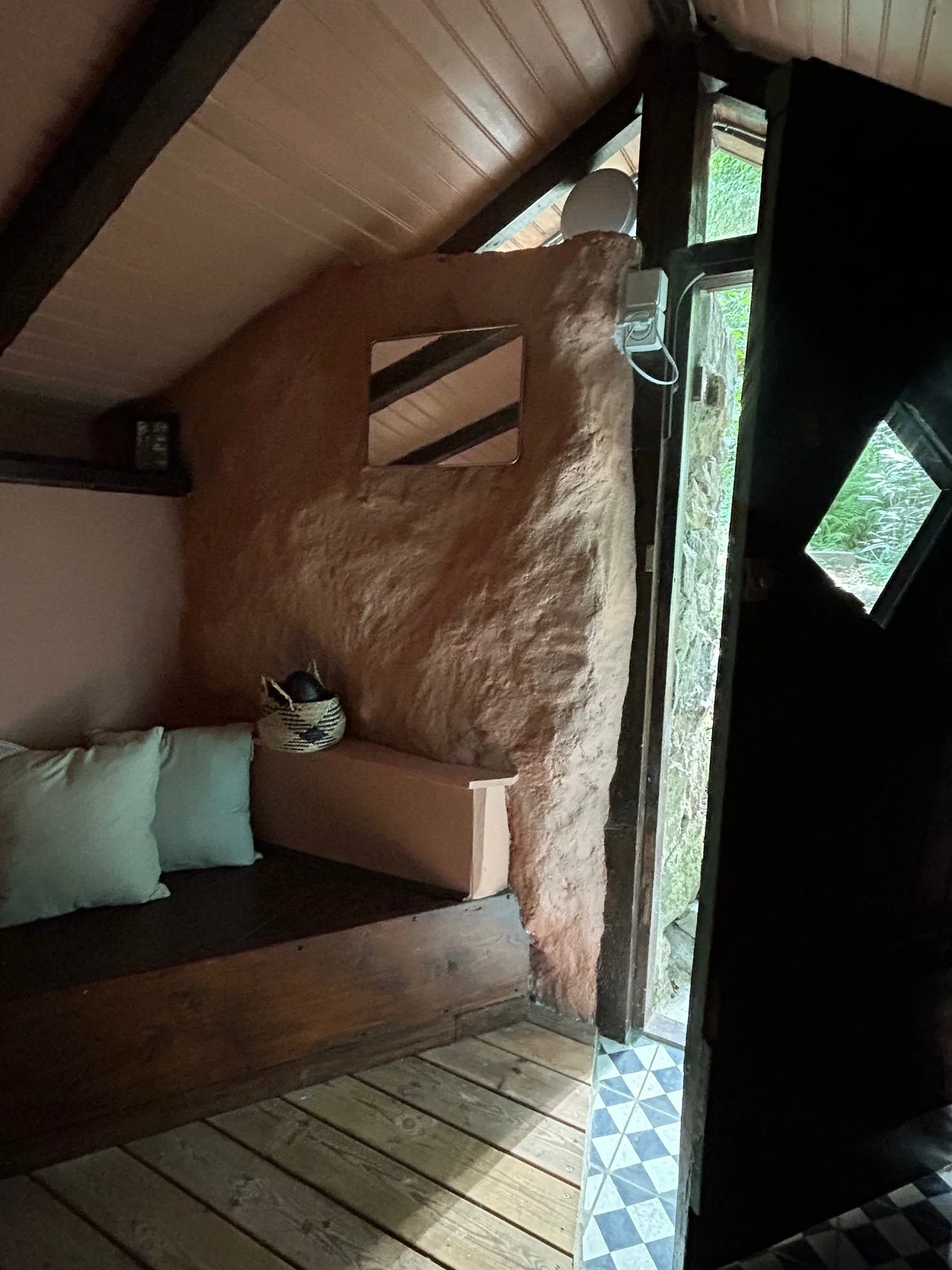 Next to the outside covered veranda is a double daybed for day slumbering or watching golden hour in late winter afternoons. Some guests spend entire days relaxing on it or sleep here.